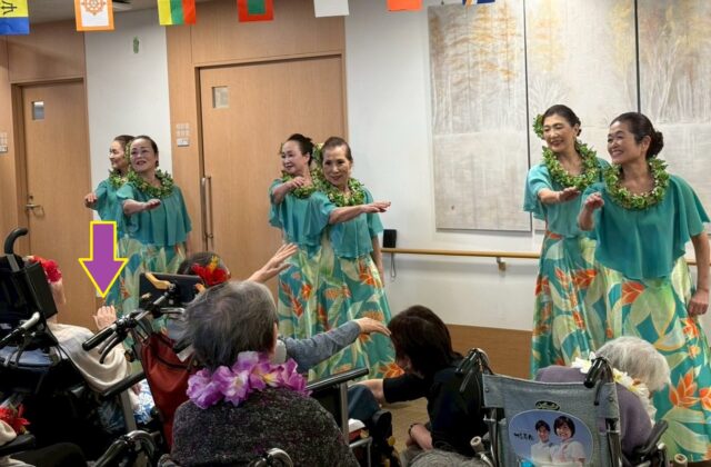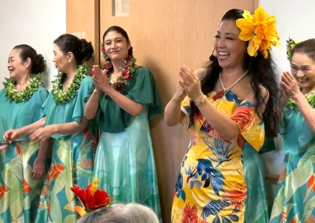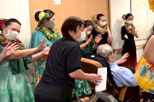 歌の最中、「海の故郷が恋しい」と歌詞をお伝えした時、フラを見ながら涙をぬぐったかたが。