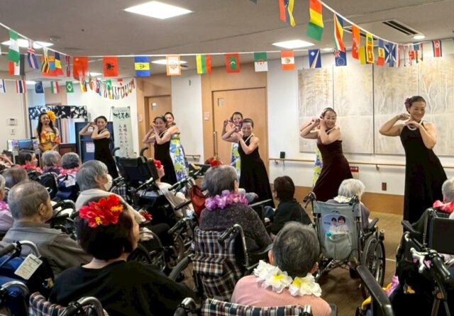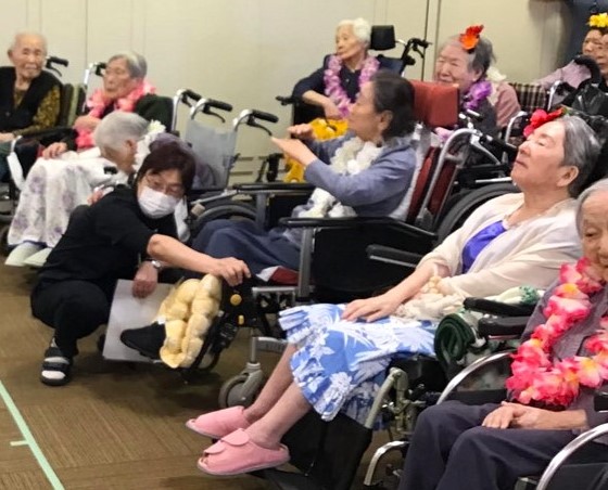 その動画を、なんとデイケアルームの大きなテレビで、スタッフさんとご入居の皆様で観てくださっていたそうなのです。